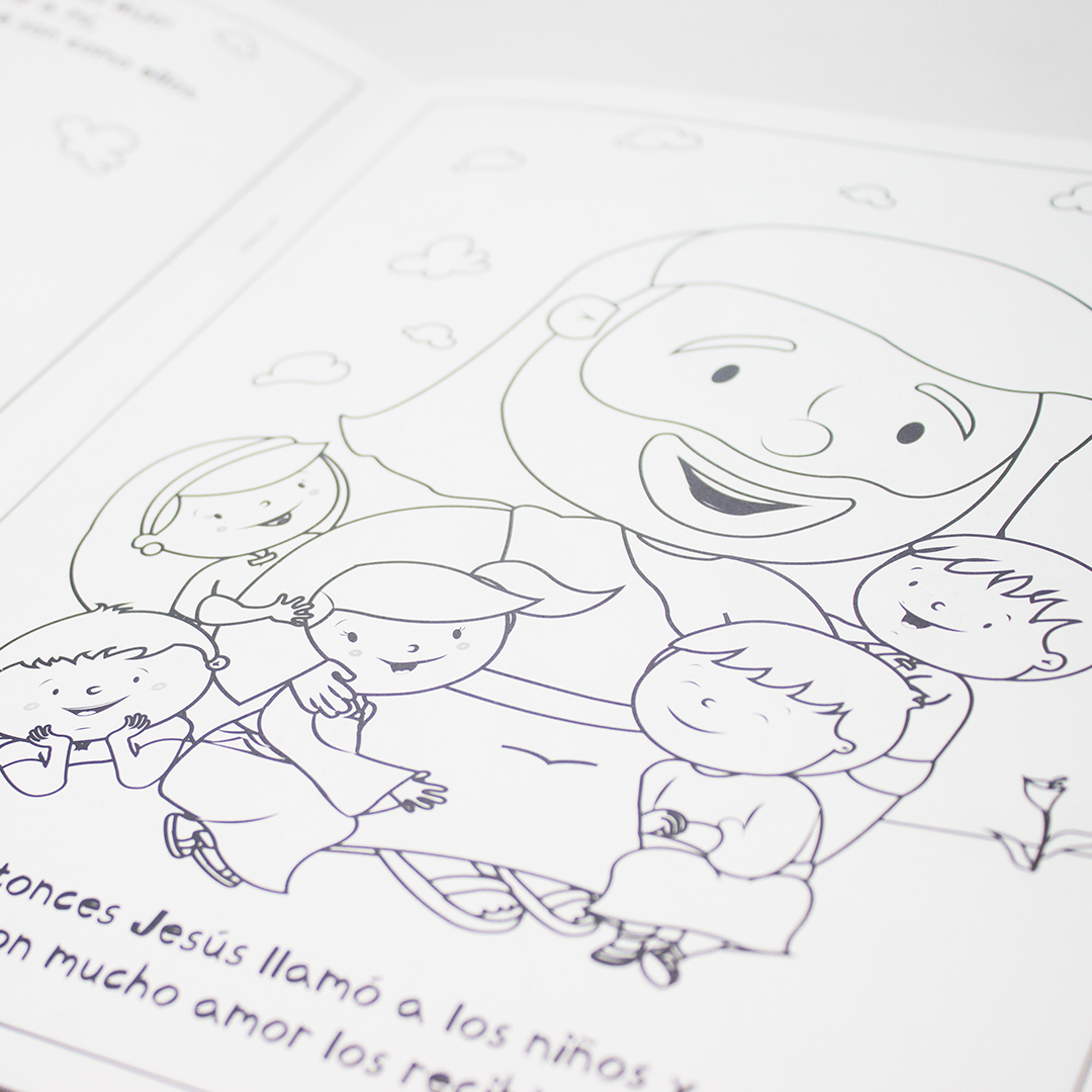 Basados en Lucas 18.15-17 buscamos afianzar en los niños de manera lúdica y divertida, mientras colorean, cuánto ama Jesús a los niños, el cuidado y cercania que Él tiene por sus pequeños, de quienes es el reino.