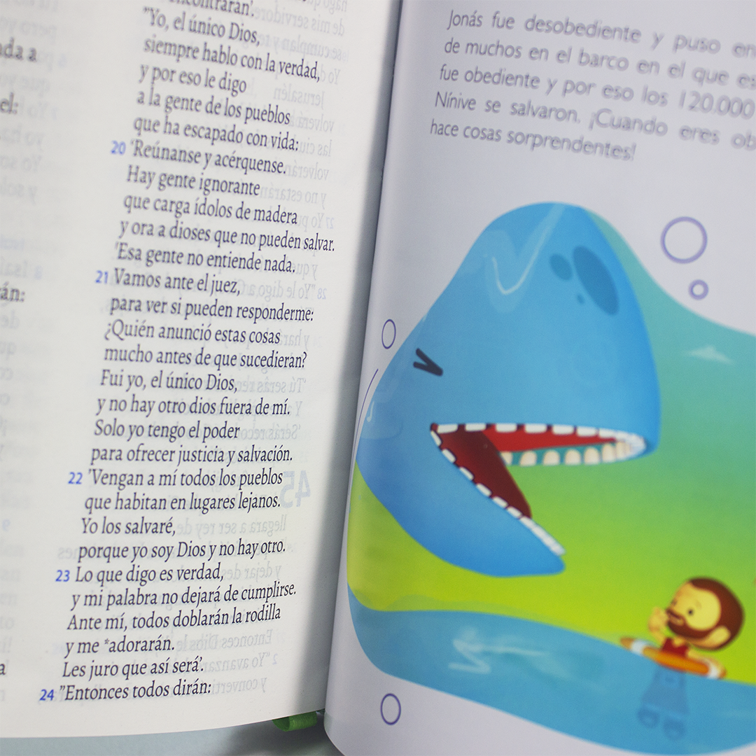 Es una Biblia en versión TLA (Traducción al Lenguaje Actual), que incluye ayudas para que los niños aprendan a estudiar la Biblia por ellos mismos. También incluye un plan de entrenamiento de 44 desafíos, en el que los niños aprenderán que la Palabra de Dios es relevante para sus vidas y cómo vivir de acuerdo a ella. Los desafíos son una excelente herramienta para que puedas discipular a tus hijos y hacerlos crecer en la fe.