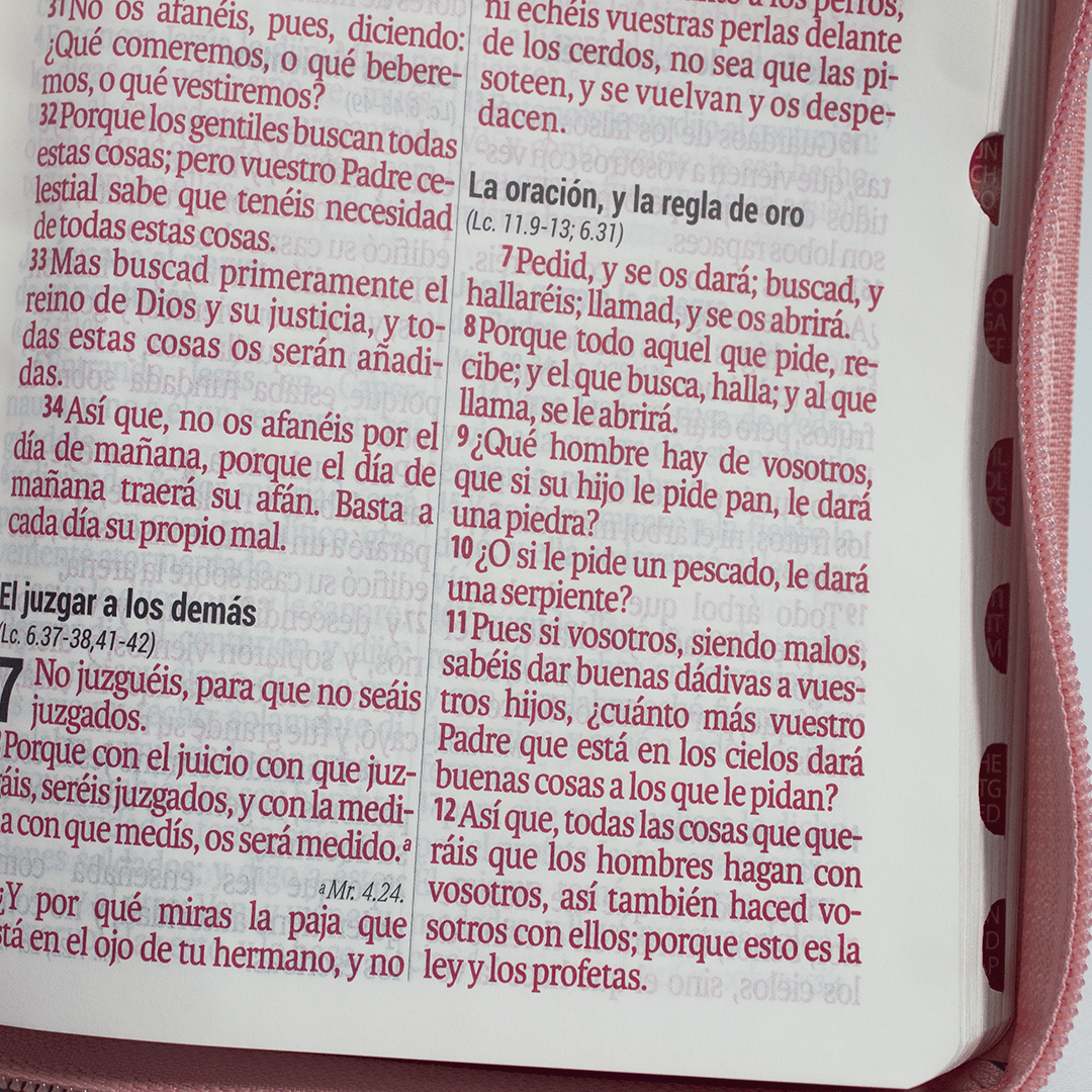 Características Especiales: Palabras de Jesús en Rojo, Concordancia, Mapas, Plan de Lectura Anual, Doble Cinta separadora.