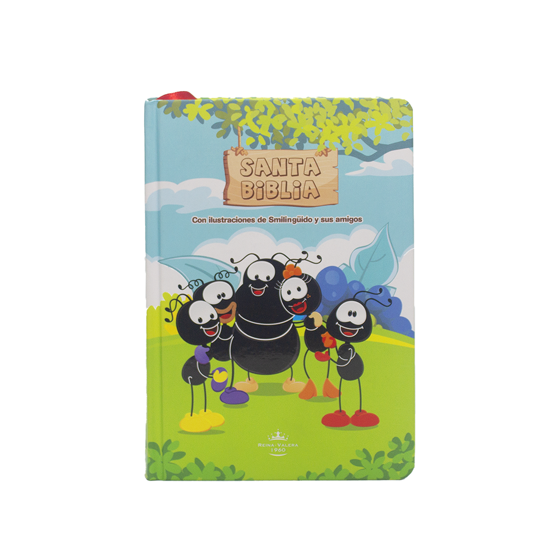 La Biblia para niños Reina Valera 1960 con ilustraciones coloridas que contiene una referencia bíblica y reflexión de smilinguido y sus amigos, esta edición hace que aprender sobre la Biblia sea divertido y emocionante. ¡Perfecta para despertar la fe en los niños!»