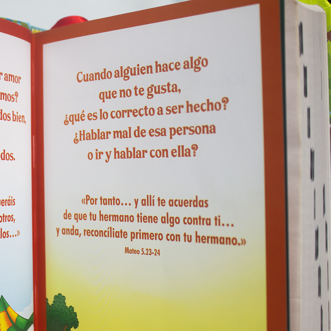 Además, tiene un tamaño adecuado con letra grande 12 puntos, tapa dura y concordancia breve para que vayan aprendiendo a buscar temas en la biblia. En la versión de siempre Reina Valera 1960.